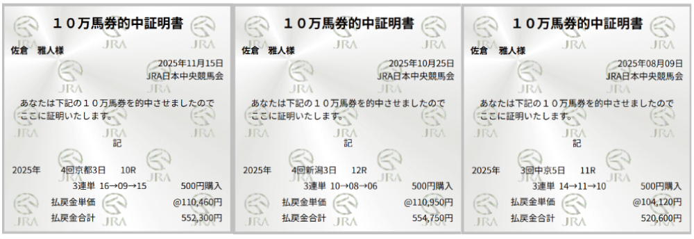 10月25日 新潟12R 10-8-6 110,950円 554,750円